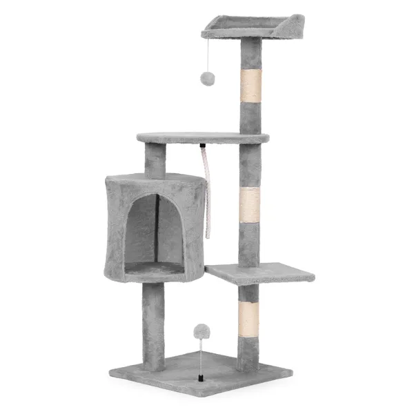 Petsi macskabútor kaparófa házzal – 110 cm, szürke