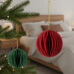 Ünnepi hangulat egyszerűen: ez a piros papír karácsonyfadísz szett elegáns, könnyű dekoráció a fára, koszorúra vagy ajándékcsomagra. A mágneses záródásnak köszönhetően a díszek gyorsan összeállíthatók és szépen megtartják gömb formájukat.