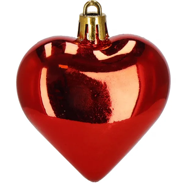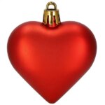 A piros, szív alakú díszek törhetetlen műanyagból készültek, így kisgyermekes vagy háziállatos otthonokban is biztonságosak. Háromféle felületüknek köszönhetően (fényes, csillámos, matt) játékos csillogást adnak a karácsonyfának, könnyű súlyuk miatt a vékony ágakat sem húzzák le, és akár koszorúk, ajándékcsomagok díszítésére is használhatók.