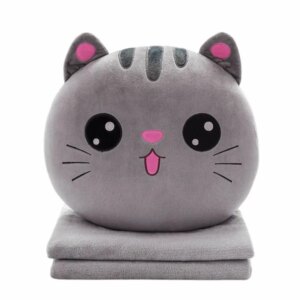 A puha plüss cica párna rejt egy 110×160 cm-es takarót, amelyet pillanatok alatt előhúzhatsz, ha plusz melegre vágysz otthon, autóban vagy repülőn. Kompakt méretei, 30×36 cm-es párnaháza és kedves megjelenése miatt könnyen viheted magaddal, elfér kanapén, bőröndben, gyerekülésen, és nagyszerű ajándékötlet kicsiknek-nagyoknak egyaránt.