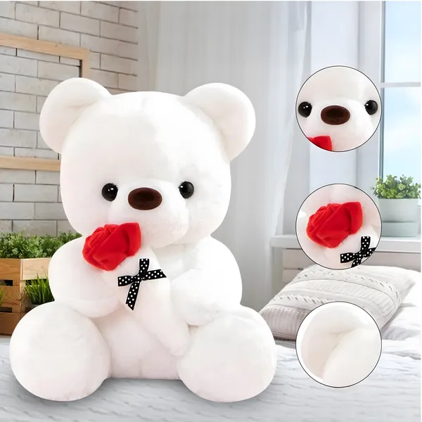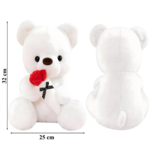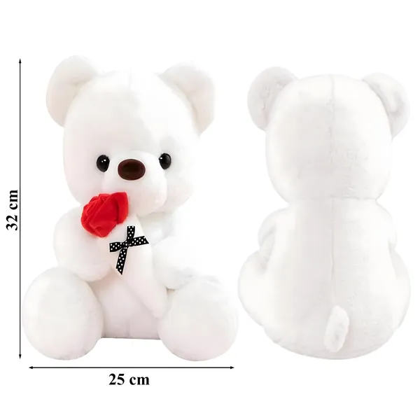 Plüss fehér maci 32 cm piros rózsával és masnival