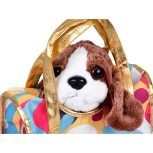 Pihe-puha plüss kiskutya, amelyet csillogó aranyfülű, színes táskájában bárhová magaddal vihetsz. A játék segít a szerepjátékban, fejleszti az empátiát, és biztonságérzetet ad elalváskor.