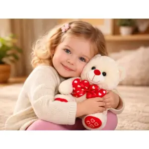 Pihe-puha, krémszínű plüss mackó nagy piros szívvel, amely azonnal meghitt hangulatot teremt és ölelésre hív. Remek választás romantikus meglepetésnek vagy gyerekszobába, mert kellemes tapintású, jól tartja a formáját, és szép emlékként is megmarad.