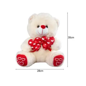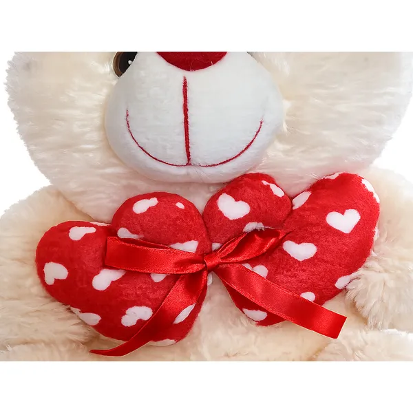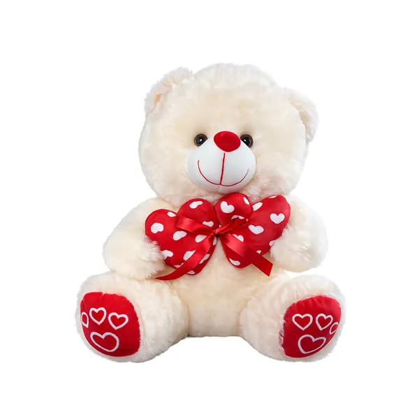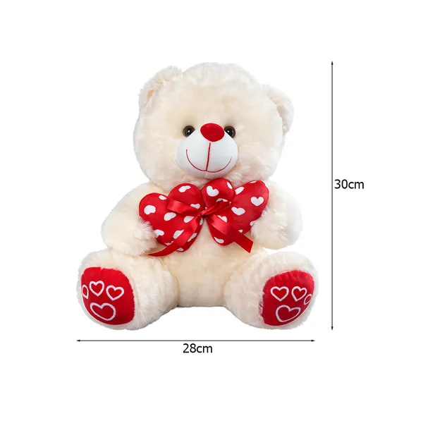 Plüss mackó piros szívvel, krémszínű, 30 cm