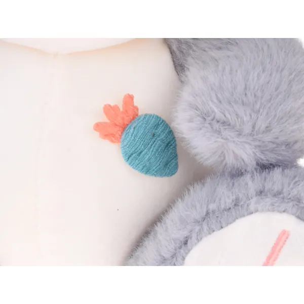 • Kedves részletek: fényes gombszemek, krémszínű pocak és apró sárgarépa a tappancsban.