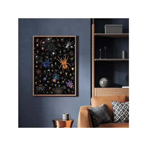 Szereted a természetet és a komoly kihívásokat? A 1000 darabos Pókok kirakó részletgazdag illusztrációján több tucat különleges faj szövi át a 48×68 cm-es képet, miközben te darabonként építed fel saját hálódat.