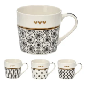 A 400 ml-es porcelán bögre arany ágacskás mintája kifinomult eleganciát visz az otthoni és vendéglátóasztalokra, miközben nagy űrtartalma kényelmesen befogadja kedvenc teáját vagy kávéját. A 12 darabos csomag egységes megjelenést biztosít, így egyszerre teremthet stílusos hangulatot családjának, irodájának vagy kávézójának.