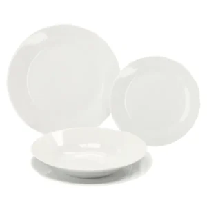 A 18 részes fehér porcelán készlettel minden fogást stílusosan tálalhatsz, miközben a tartós, mosogatógépben is mosható anyag megkönnyíti a mindennapokat. A különböző méretű tányérok leveshez, főételhez és desszerthez egyaránt tökéletesen illenek.