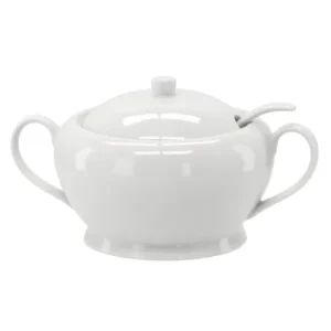 Elegáns, 2 literes porcelán tál fedéllel és merőkanál-nyílással, amely megkönnyíti a levesek, szószok tálalását és higiénikusan tartja az ételt. Mosogatógépben mosható, strapabíró anyaga és modern formája tökéletesen illik hétköznapi és ünnepi asztalokhoz, mindennapi használatban is időt spórol és emeli a teríték fényét.