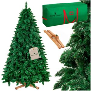 Prémium erdei műfenyő 220 cm, PVC ágak, fa állvány, tárolózsák