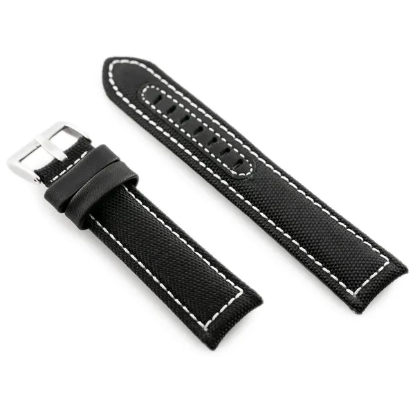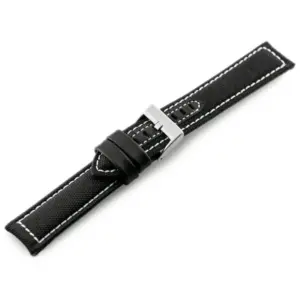 Kiváló minőségű, természetes bőrből készült óraszíj. A külső rész fekete színű, elegáns fehér varrással, a belső rész szintén fekete bőr.