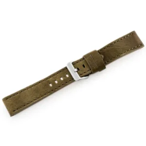 Ez a kézzel készült, prémium minőségű természetes marhabőr óraszíj elegáns olívazöld árnyalatban érkezik, a színhez illő varrással. Bőre finoman kezelt, puha tapintású, mégis tartós, így hosszú ideig megőrzi kifinomult megjelenését.