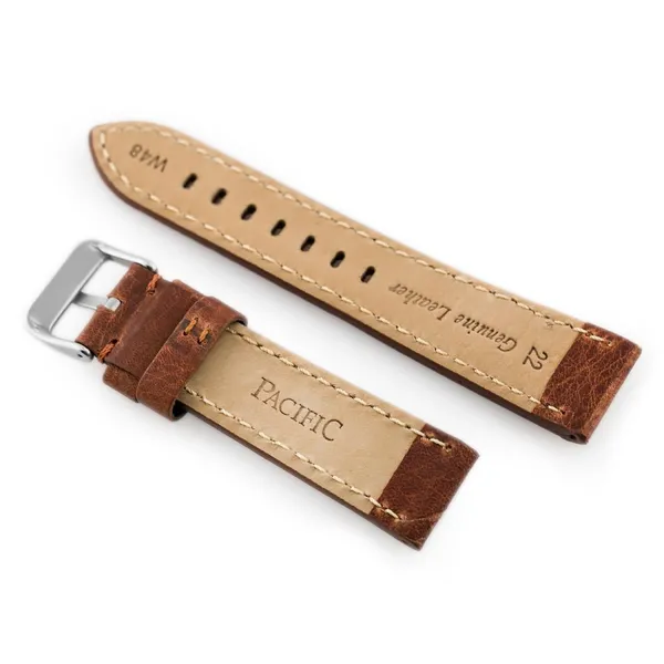 Prémium sötétbarna bőr óraszíj 24 mm ezüst csattal