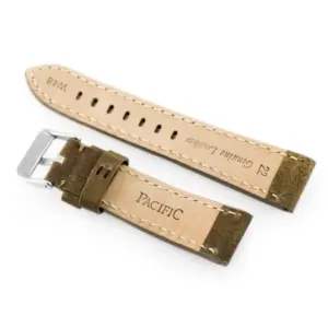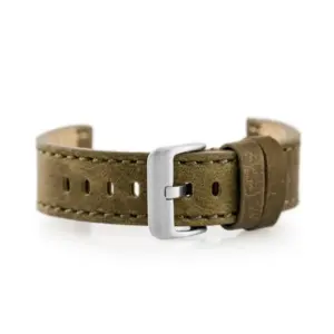 Kiváló minőségű, természetes bőrből készült óraszíj elegáns olívazöld színben, hozzá illő olívazöld varrással. A stílusos megjelenést az ezüstszínű fém csat teszi teljessé.