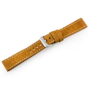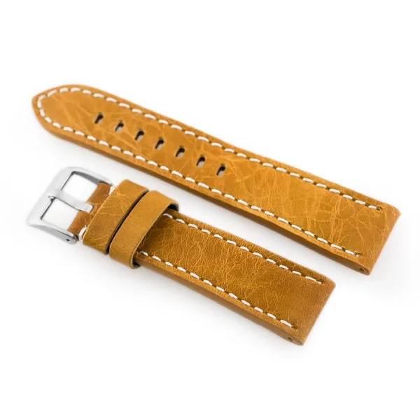 Kiváló minőségű, természetes bőrből készült óraszíj világosbarna színben, elegáns fehér varrással.