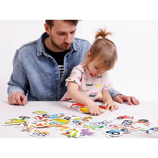 A vidám illusztrációk azonnal játékra hívnak, miközben a kicsi észrevétlenül gyakorolja a szem-kéz koordinációt, a koncentrációt és a beszédet. Ha a képek elkészültek, építsetek garázst kockákból, nevezzétek meg a járműveket, vagy utánozzátok a markoló és a dömper hangját – a szórakozásnak csak a képzelet szab határt!