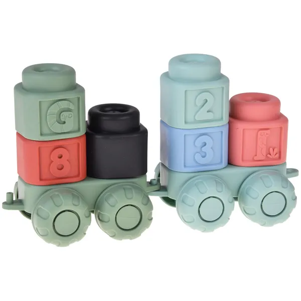 A puha, préselhető kockák építésre, válogatásra és toronyépítésre ösztönzik a kicsiket, így játék közben tanulnak logikus gondolkodást, térbeli tájékozódást és kreativitást.
