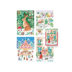 Négy, egyenként 150 darabos kirakóval ez a díszdobozos szett bensőséges, közös programot kínál a téli estékhez. A megfigyelőképességet és a kreativitást fejlesztő kirakók összerakás után akár keretbe is kerülhetnek, hogy otthonodat is díszítsék.