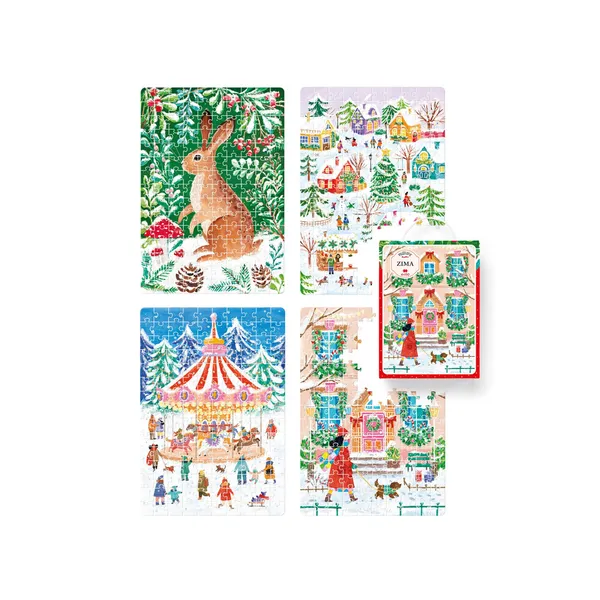 Ünnepeld a hideg hónapokat a Puzzlove CzuCzu Tél puzzle szettel, amely négy, egyenként 150 darabos kirakót rejt egy ízléses díszdobozban. A közepes méretű, 23 × 33 cm-es képek varázslatos, téli jeleneteket ábrázolnak, amelyek összeillesztése tökéletes program egyedül vagy családdal.