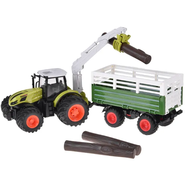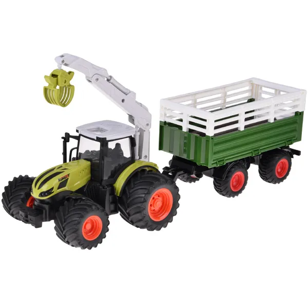 RC traktor pótkocsival és 360°-os favágó markolóval, LED világítás