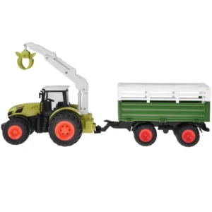 Valósághű RC traktor LED fénnyel, billenthető pótkocsival és 360°-os markolóval, amely fejleszti a kézügyességet és órákig leköti a gyerekeket.
