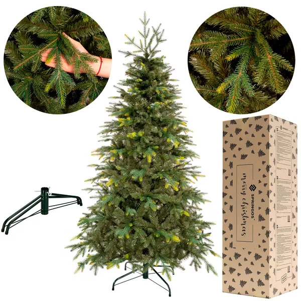 Realisztikus mű lucfenyő karácsonyfa 180 cm, PE tűlevelek, fém talp