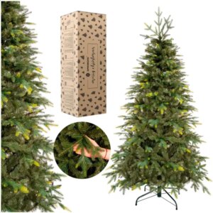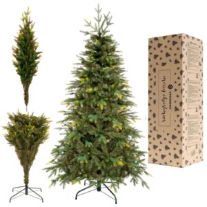 Ez a 180 cm magas, realisztikus mű lucfenyő igazi ünnepi hangulatot varázsol otthonába. Kétféle – zöld és barna – PE tűlevél biztosít természetes megjelenést és dús lombozatot. A csomagban található masszív, négyágú fémtalp stabil tartást ad, a fa pedig mindössze néhány egyszerű mozdulattal összeszerelhető.
