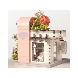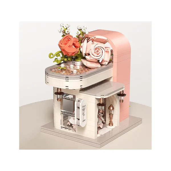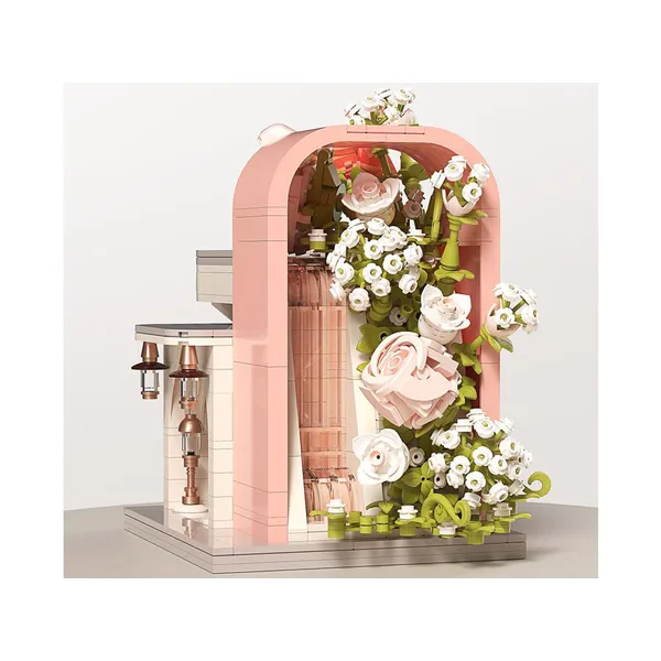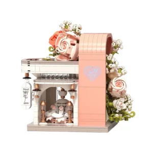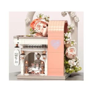 Rose Meet Wedding Hall romantikus építőkocka készlet, amellyel egy virágokkal díszített esküvői szalont építhetsz meg vitrinnel és káprázatos menyasszonyi ruhával. A pasztell rózsaszín, fehér és zöld színek, valamint a tetőt borító rózsafüzérek mesebeli hangulatot teremtenek, miközben a finoman kidolgozott lámpások és homlokzati díszek igazi ékszerré varázsolják az épületet.
