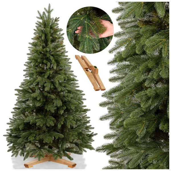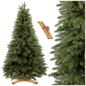 Az élethű, dús lombú fenyő élőfa-hatást nyújt lehulló tűlevelek nélkül, miközben a stabil fa talp és a mellékelt tárolózsák évekig megkönnyíti a felállítást és az elpakolást.