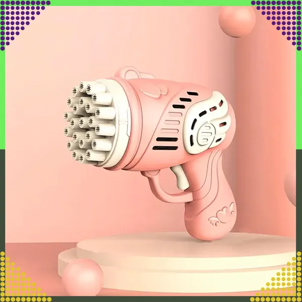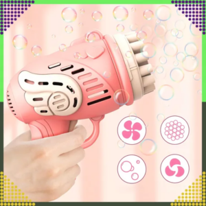 A buborékfújó pisztoly egyszerre varázsol vidám, szivárvány-színű buborékfelhőt és gondtalan játékot a kicsik életébe. A delfin alakú, rózsaszín készülék ergonomikus fogantyúja könnyen illeszkedik a gyermekek kezébe, a mellékelt buborékfolyadék pedig azonnali indulást biztosít – nincs szükség előkészítésre.
