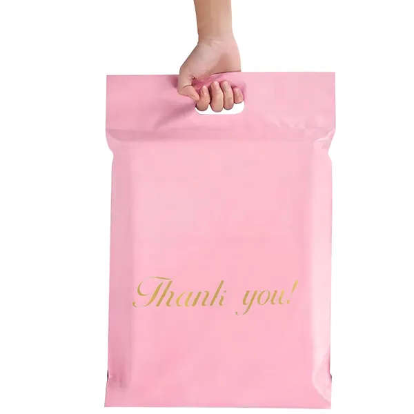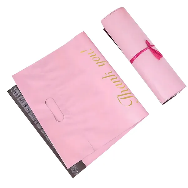 A rózsaszín, „Thank You” feliratos futárcsomag-fóliatasak ideális megoldás webáruházak számára, akik biztonságosan és látványosan szeretnék feladni közepes méretű termékeiket. A 310 × 420 mm-es belméret + 70 mm fogantyú bőséges helyet és kényelmes hordozhatóságot kínál.
