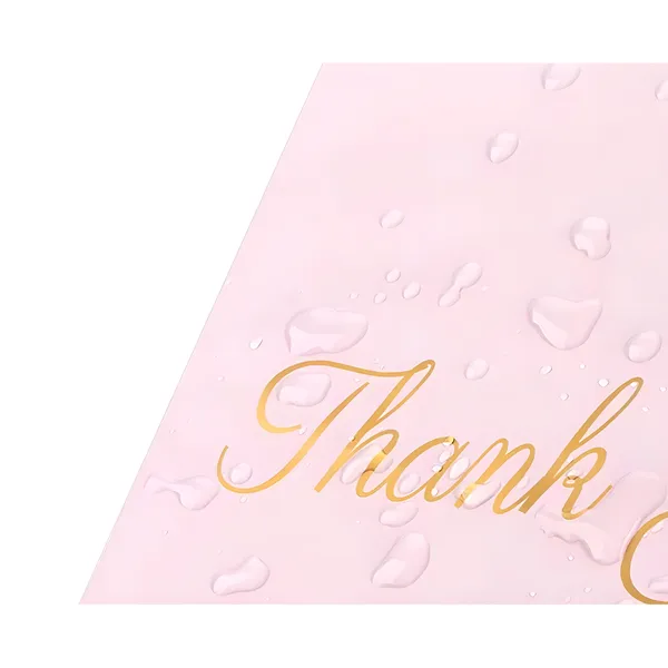 A fogantyús, rózsaszín futárcsomag-tasak víz- és szakadásálló LDPE-ből készül, a beépített ragasztósáv egyetlen mozdulattal lezárja a csomagot, így megóvja tartalmát a nedvességtől és illetéktelen felnyitástól. 50 darabos kiszerelése a webáruházaknak költséghatékony, gyors csomagolást kínál közepes méretű termékekhez, míg megnyerő „Thank You” felirata pozitív benyomást kelt vásárlóidban.