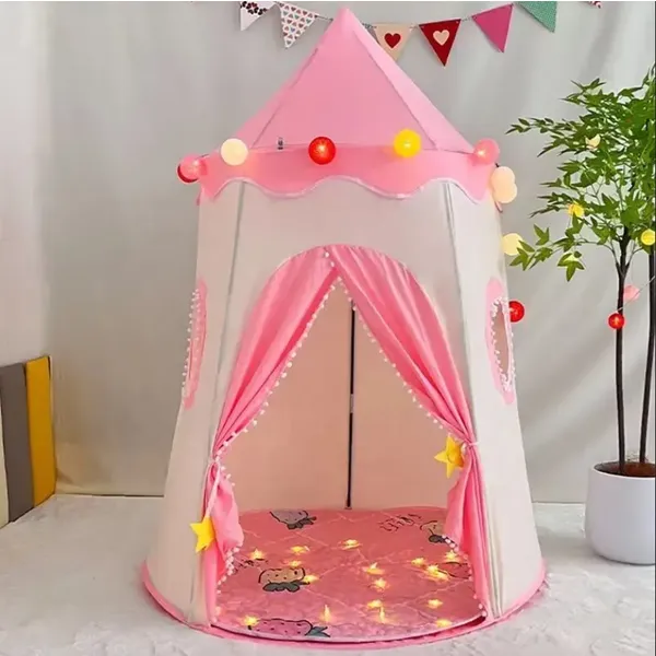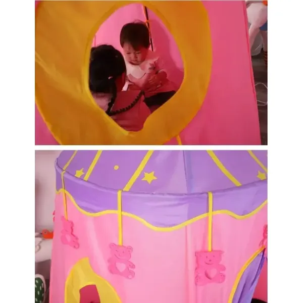 A rózsaszín hercegnő kastély formájú játszósátor varázslatos birodalmat teremt, ahol a kicsik elmerülhetnek a szerepjátékban, olvashatnak vagy akár nyugodtan pihenhetnek.