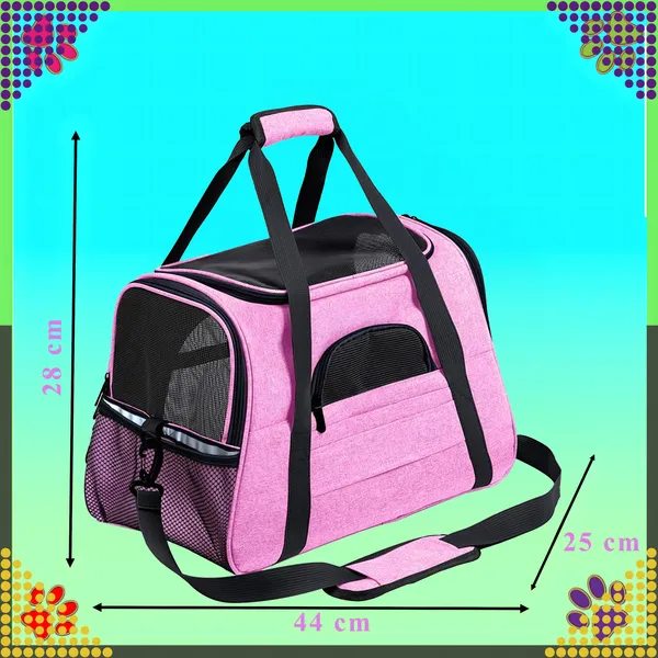 Rózsaszín kisállat szállító táska, 44×28×25 cm, kutya/macska hordozó
