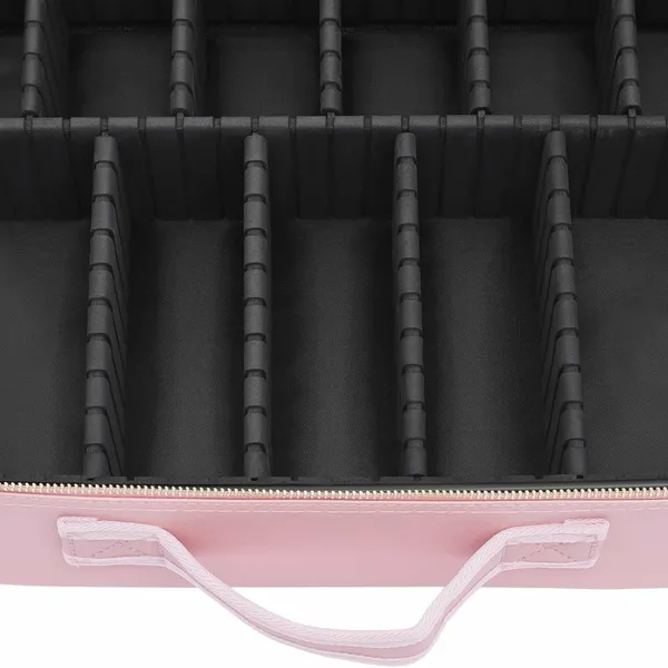Rózsaszín utazó kozmetikai táska, merev falú, állítható rekeszekkel