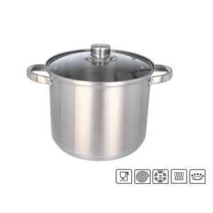 A 4 literes, 20 cm átmérőjű rozsdamentes acél fazék ideális levesekhez, pörköltekhez és tésztafőzéshez. 0,5 mm vastag S/S 201 acél teste ellenáll a korróziónak, több rétegű indukciós alja pedig gyors, egyenletes hőeloszlást biztosít minden főzőfelületen.