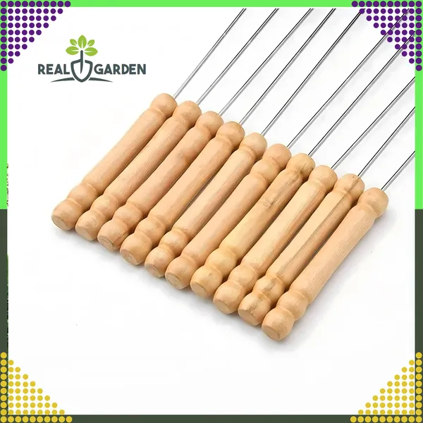 A saslik, grillezett zöldség vagy akár pillecukor elkészítése ezekkel a masszív, rozsdamentes acél nyársakkal gyerekjáték. A fa nyél kényelmes fogást biztosít, miközben távol tartja a kezet a forró felülettől.