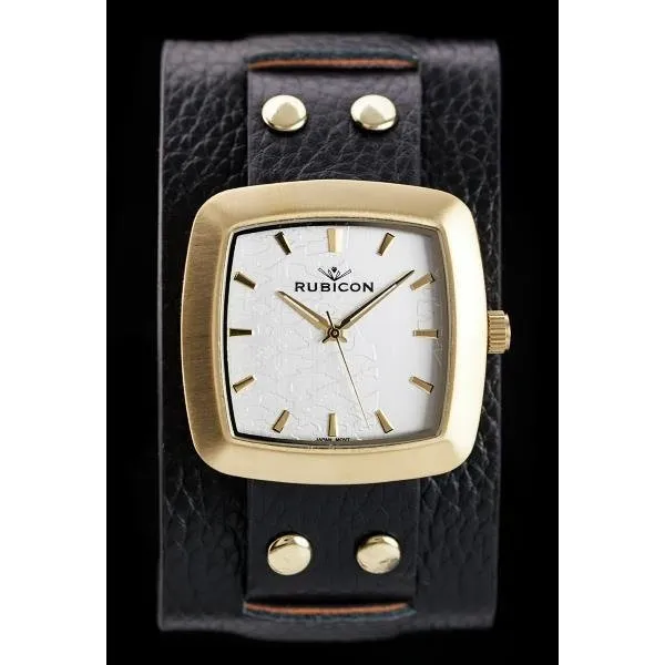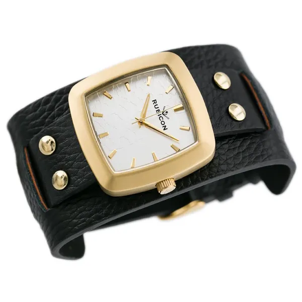 Rubicon Bonie női kvarc karóra arany tok, fekete bőrszíj, ezüst számlap