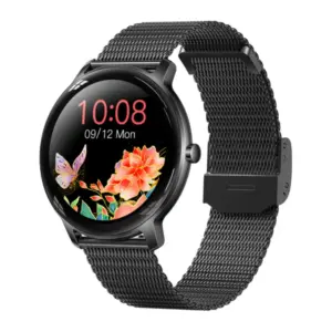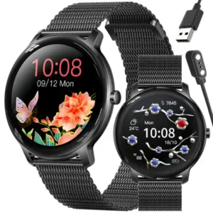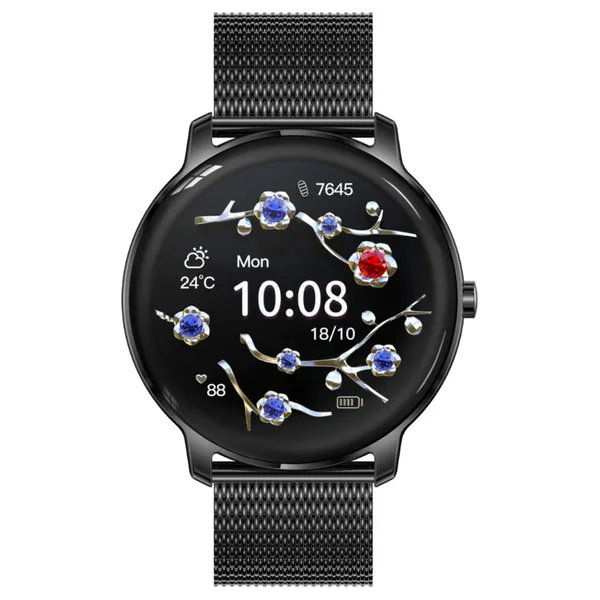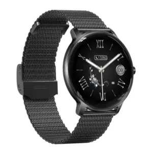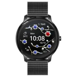 Elegáns és modern női okosóra fekete színben, amely ötvözi a divatos megjelenést a mindennapokban hasznos okosfunkciókkal. A kerek, érintőkijelzős modell kiváló választás azoknak, akik egy stílusos, mégis praktikus órát keresnek sporthoz, munkához és hétköznapi használatra.
