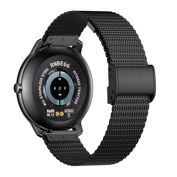 Rubicon női okosóra fekete acél szíjjal, IP67, pulzusmérő