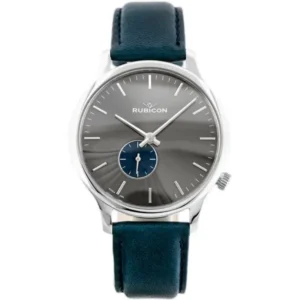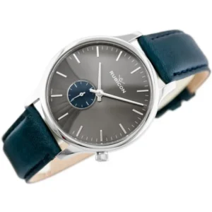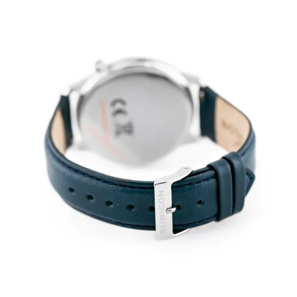 Rubicon RNCE07 férfi karóra, svájci kvarc, acél tok, kék bőrszíj, 42 mm