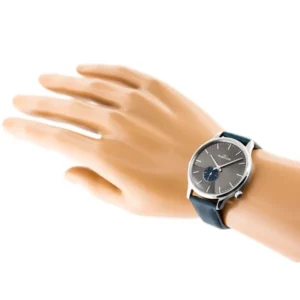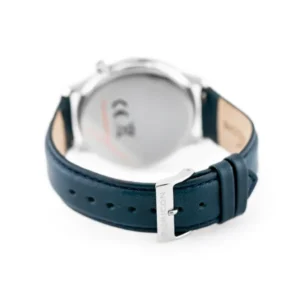 A mindössze 7 mm vékony férfi karóra svájci pontosságú Ronda szerkezettel, rozsdamentes acél tokkal és kényelmes kék bőrszíjjal stílusosan kíséri a hétköznapokat és az esti programokat egyaránt. Karcálló ásványüveg és WR30 vízállóság védi, így bátran viselheti munkában, utazáskor vagy szabadidős tevékenységek során.