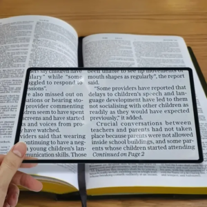 A nagyító PVC lap nedves kendővel könnyen tisztítható, vegyszert nem igényel. Kiváló ajándék idősebb családtagoknak vagy bárkinek, aki gyakran küzd apró betűkkel.