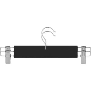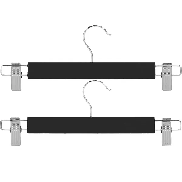 A 33 cm-es, lakkozott fa ruhafogas pár elegáns fekete felületével stabilan tartja ingeket, szoknyákat és nadrágokat, megóvva őket a gyűrődéstől. A klipszekkel ellátott kialakítás helytakarékos rendszerezést kínál, hogy szekrénye áttekinthetőbb és rendezettebb legyen.