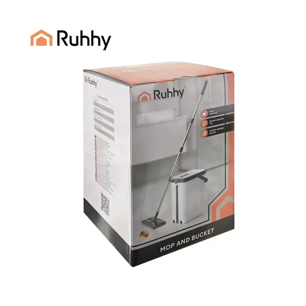 RUHHY 11L kétkamrás felmosó szett – csavaróval, 3 mop fejjel