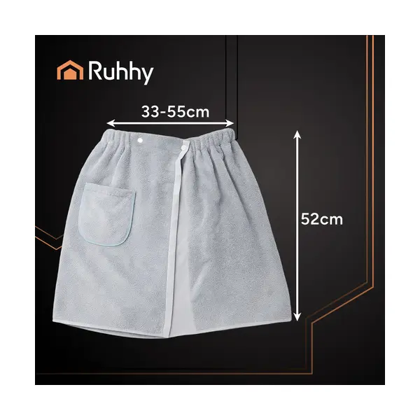 A Ruhhy férfi szauna kilt ideális választás szaunába, gőzfürdőbe, wellnessbe vagy akár otthoni relaxációhoz. A puha, nedvszívó pamut kényelmes viseletet ad, míg a gyorsan száradó anyagszerkezet higiénikusabbá teszi a gyakori használatot. A rugalmas derékrész gombbal stabilan tart, a praktikus zseb pedig mindig kéznél van.
