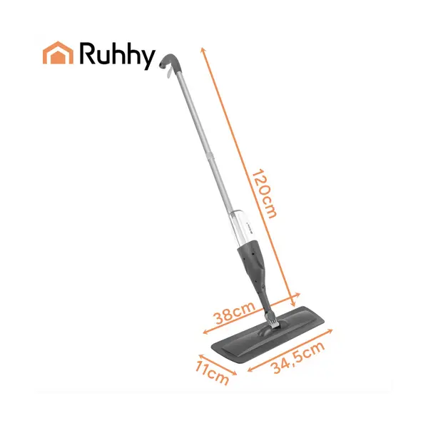A Ruhhy 300 ml-es spray mop modern, vödröt nem igénylő megoldás a mindennapi padlótakarításhoz. A markolatba épített permetezőnek köszönhetően te adagolod a folyadékot, a 360°-ban forgó fej pedig könnyedén befér a bútorok alá és a nehezen elérhető sarkokba is. Könnyű, ergonomikus kialakítása gyorsabbá és kevésbé fárasztóvá teszi a felmosást.