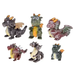 Hat egyedi, kézzel festett sárkány figura, amelyek élénk színeikkel és részletgazdag kidolgozásukkal fejlesztik a gyerekek fantáziáját, miközben tartós műanyag anyaguk hosszan tartó játékélményt biztosít.