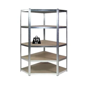 Sarok állvány, 5 szintes, 180×90×30 cm, 175 kg/polc, galvanizált fém/MDF
