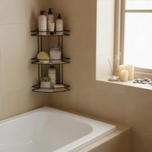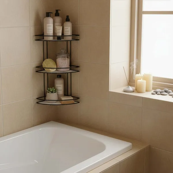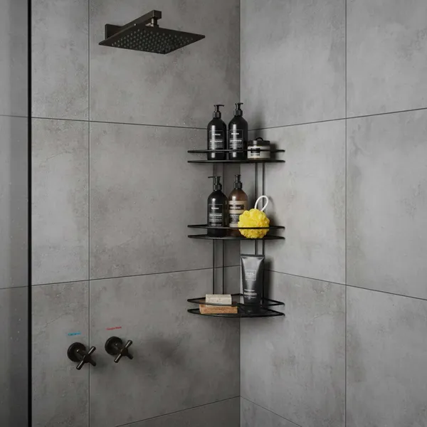 Hozd ki a legtöbbet a fürdőszoba sarkaiból ezzel a 3 szintes, falra rögzíthető sarokpolccal: rendezett helyet ad tusfürdőnek, samponnak és kiegészítőknek. A rozsdamentes acél váz stabil tartást biztosít, a peremes polcok pedig segítenek, hogy a flakonok ne csússzanak le.